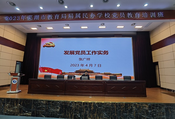 为深入学习贯彻党的二十大精神,坚持社会主义办学方向,落实立德树人根本任务,4月7日,由芜湖市教育局主办,芜湖职教联盟、芜湖职业技术学校承办的民办学校党员教育培训班在我校南校区图书馆报告厅举行。市教育局党委委员、副局长、民办学校党委书记周自强,我校党委副书记袁家和,市教育局民办学校党委副书记倪进锁出席开班仪式,继续教育学院相关负责人参加,仪式由继续教育学院党总支书记赵敬德主持。