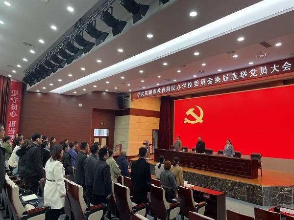 开班仪式后,举行了中共芜湖市教育局民办学校委员会第二届委员会换届选举党员大会。大会在庄严的国歌声中拉开帷幕。会议听取了周自强代表总支委员会所做的工作报告,报告回顾和总结了过去五年中共芜湖市教育局民办学校党委的工作及成效,同时展望了未来工作的方向。接着,全体党员通过大会选举办法,通过大会监票人、计票人名单。倪进锁介绍候选人情况及产生过程,宣读市教育工作党委批复。最后,全体党员以无记名投票的方式选举产生新一届芜湖市民办学校党委委员。大会在雄壮的《国际歌》声中圆满闭幕。