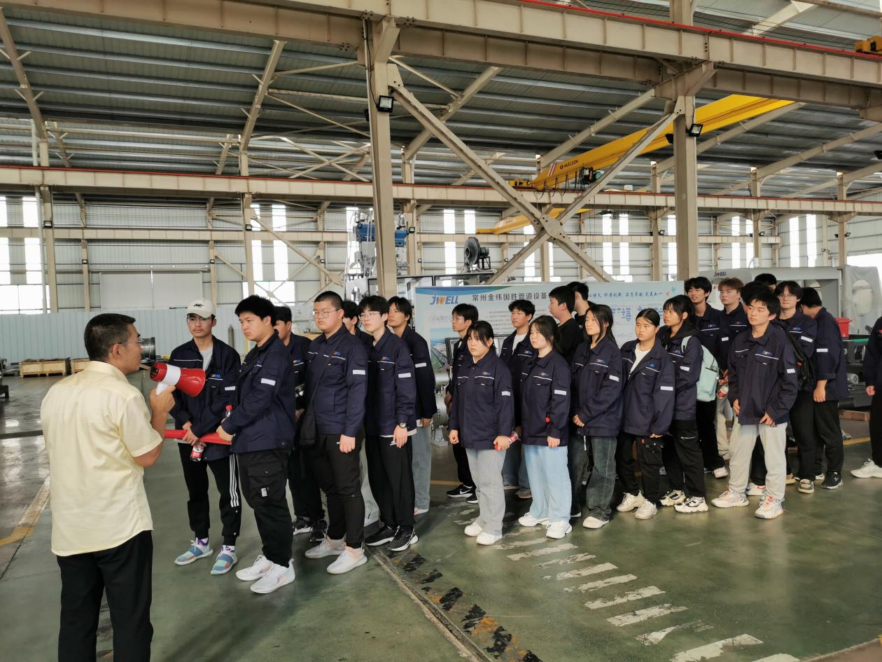 金纬机械溧阳厂区人事部张群部长详细介绍了公司的发展历程和企业文化。随后,同学们参观了管材挤出生产线、板材生产线、塑料回收生产线三个生产车间,在各专业人员耐心、细致地讲解下,同学们了解了金纬机械公司各类设备的相关知识。中午,同学们还到厂区食堂就餐,体验用餐环境。