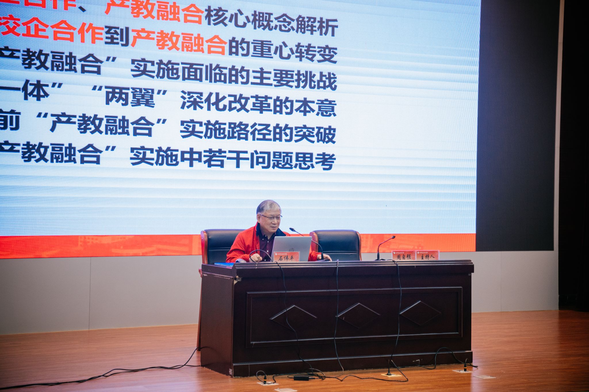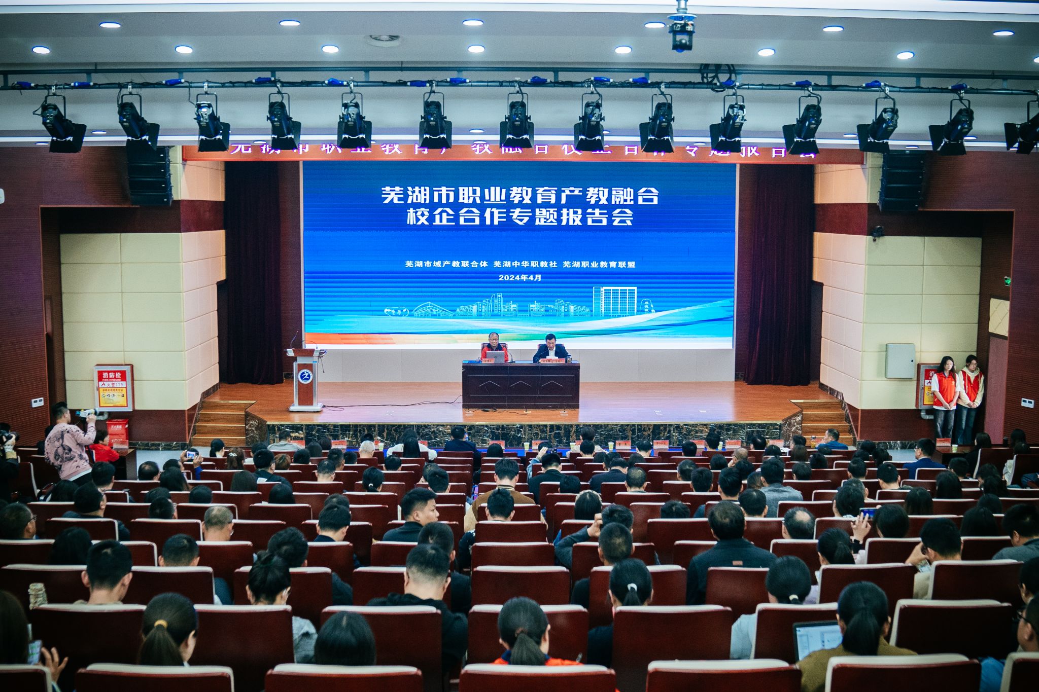 4月15日上午,芜湖市域产教联合体、芜湖中华职教社、芜湖职业教育联盟举办芜湖市职业教育产教融合校企合作主题报告会在我校召开。华东师范大学终身教授、博士生导师、华师大职成教研究所名誉所长石伟平,芜湖市发展和改革委员会副主任董亮应邀做专题报告。相关市直部门负责人,在芜本科高校分管校长,芜湖市产教联合体部分成员单位、芜湖职业教育联盟成员代表、芜湖中华职教社会员代表,我校副院长刘育红及部分二级学院专业负责人共200余人参会。