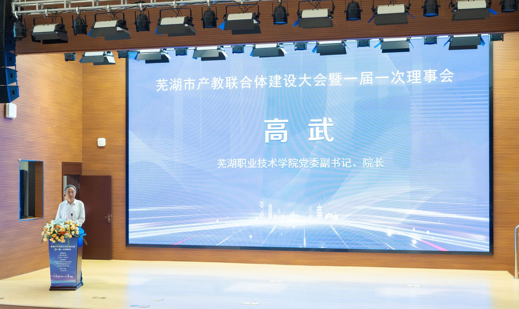 6月6日,芜湖市产教联合体建设大会暨一届一次理事会在芜湖经开区举行。芜湖市人民政府副市长朱的娥,安徽省教育厅厅职成处负责同志,市直相关部门负责人近200人参会。我校党委副书记、院长高武,党委委员、副院长朱志国和相关职能部门负责人参会。