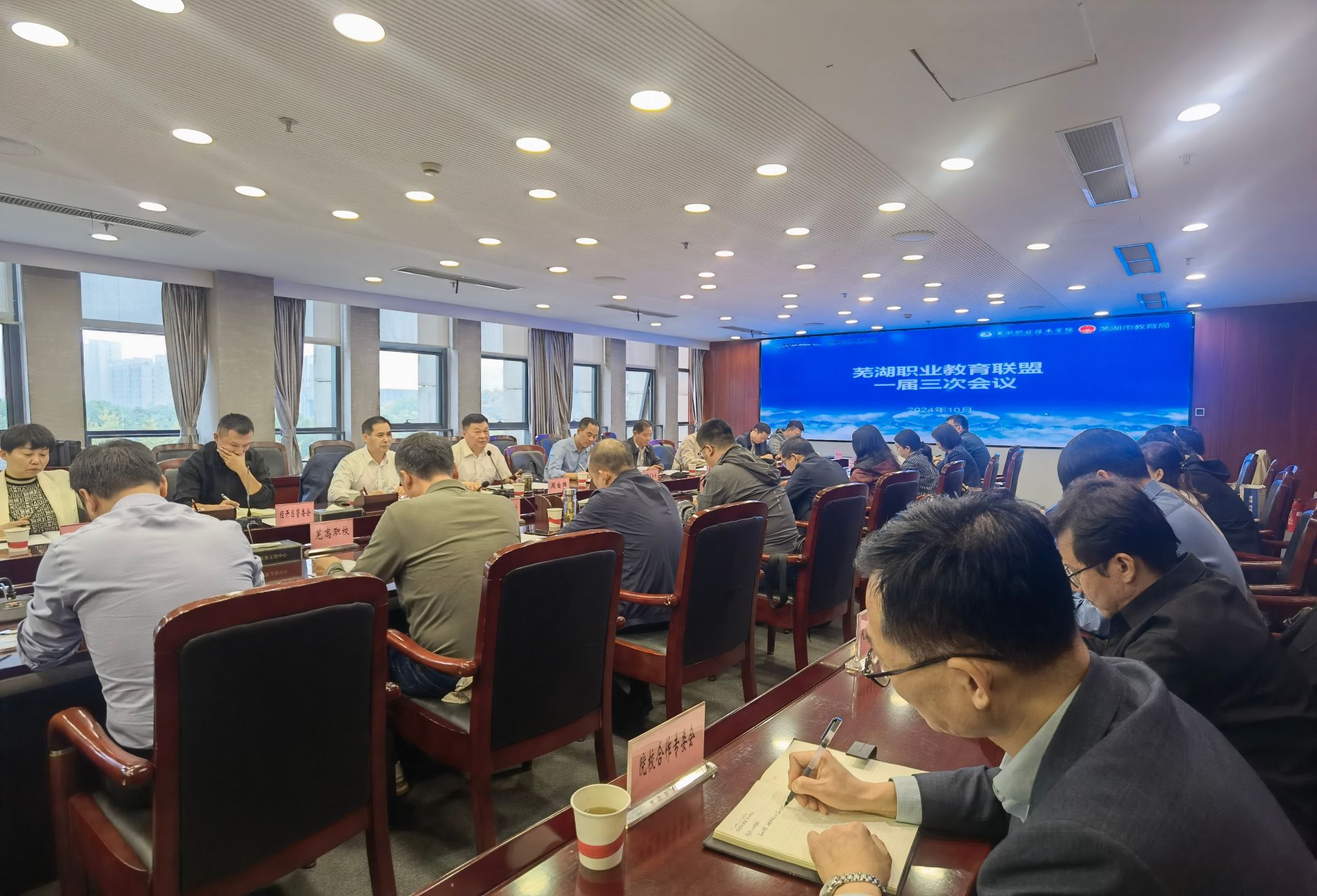10月15日,芜湖职业教育联盟一届三次理事大会在芜湖市政务中心举行。联盟第一届理事会常务理事单位负责人及联盟秘书处成员共计40余人参会。
