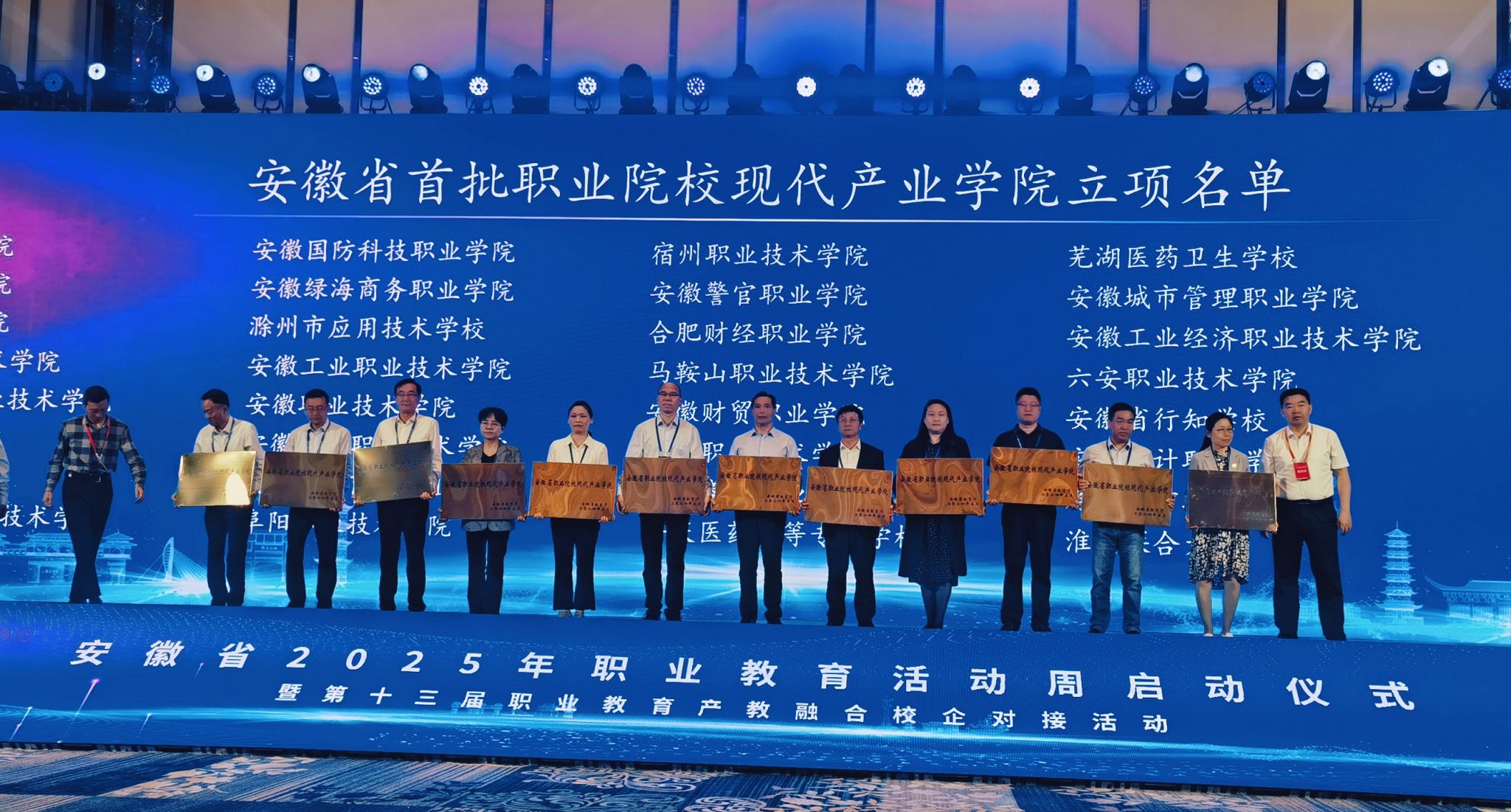 5月13日上午,由安徽省教育厅、芜湖市人民政府等十部门联合主办的安徽省2025年职业教育活动周启动仪式暨第十三届职业教育产教融合校企对接活动在芜湖万达嘉华酒店启幕。安徽省省委教育工委委员、教育厅副厅长刘业勋等出席活动,全省职业院校、知名企业代表等400余人参会。我校党委委员、副院长朱志国应邀参加启动仪式。