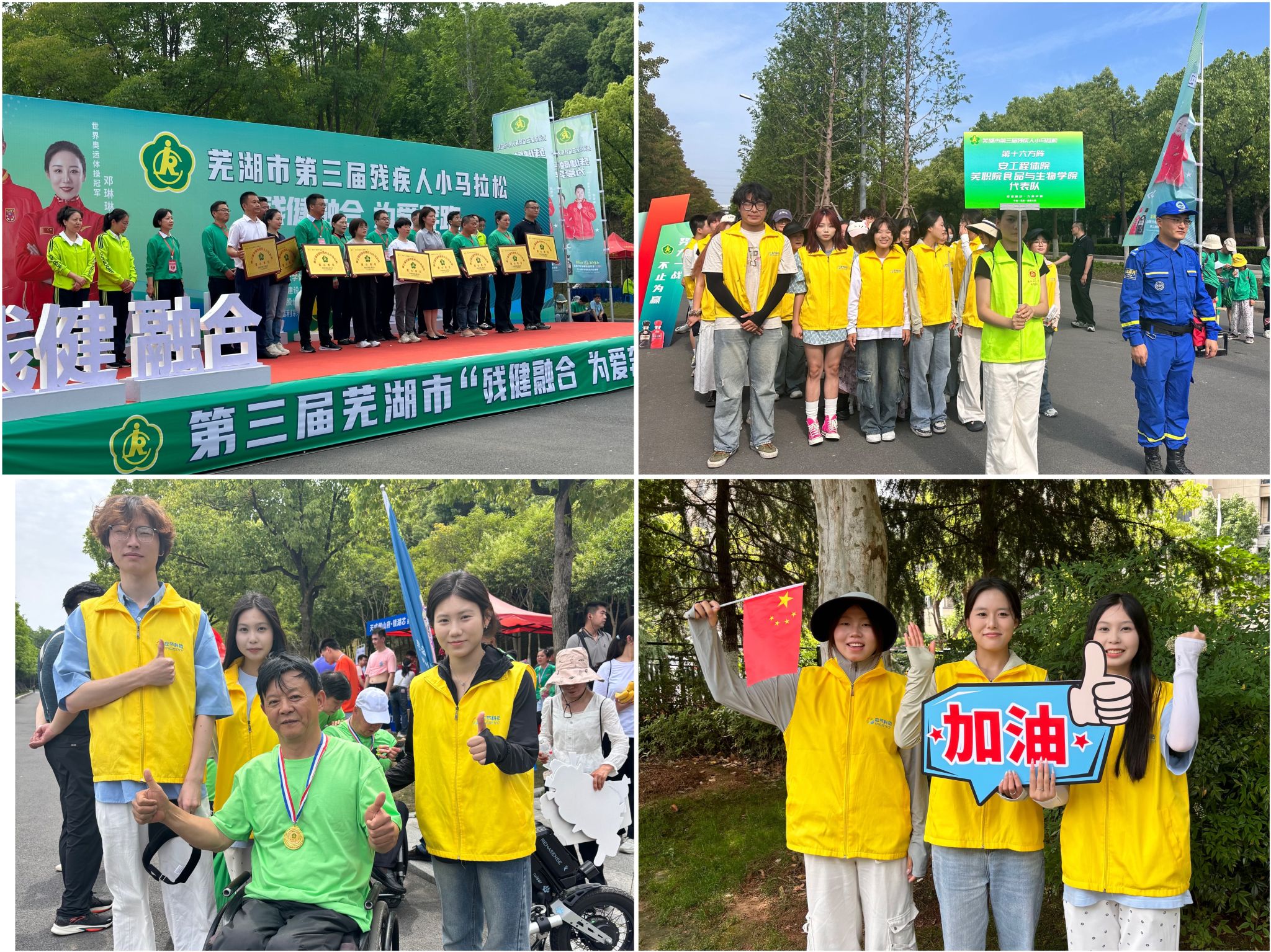 5月17日,在第三十五次“全国助残日”来临之际,由芜湖市残联、市民政局、市体育局联合芜职院食品与生物工程学院等共同主办的第三届“残健融合·为爱奔跑”小马拉松活动,在芜湖市雕塑公园激情开跑。作为全国青年文明号集体,我校食品与生物工程学院组织50余名志愿者全程护航,以温暖服务诠释新时代青年责任担当。